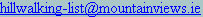 mailing list about challenge walks and general hillwalking issues in Ireland. You can subscribe or unsubscribe automatically. To subscribe: Note: try to subscribe from an email address, such as your personal address, that does have an overactive mail filter.
