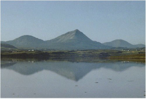Errigal, centre, taken from Dooey strand early on a summer's day.